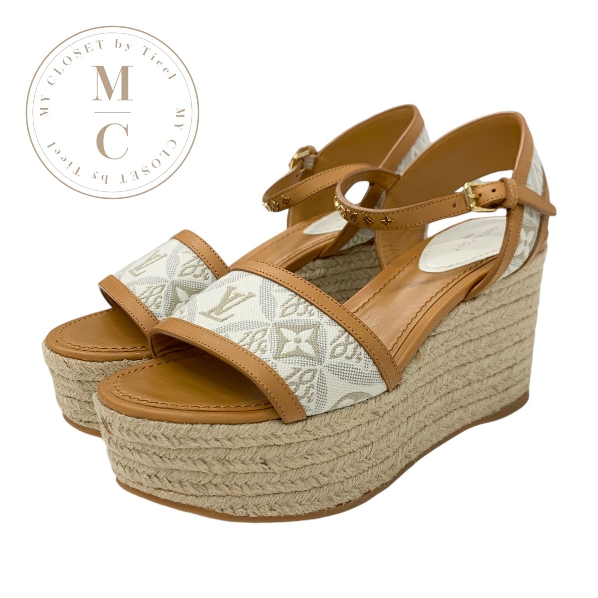 ルイヴィトン LOUIS VUITTON スターボードライン モノグラム サンダル 靴 シューズ レザー ベージュ ウェッジソール エスパドリーユ