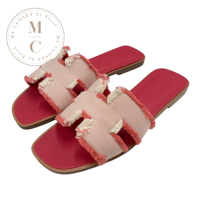 エルメス HERMES オラン サンダル 靴 シューズ ファブリック レザー ピンク フラットサンダル