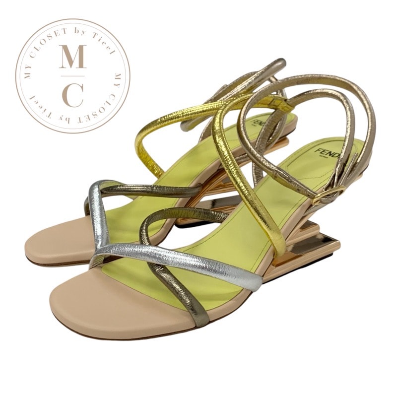 フェンディ FENDI ファースト サンダル 靴 シューズ レザー メタリックカラー ストラップ メタルヒール