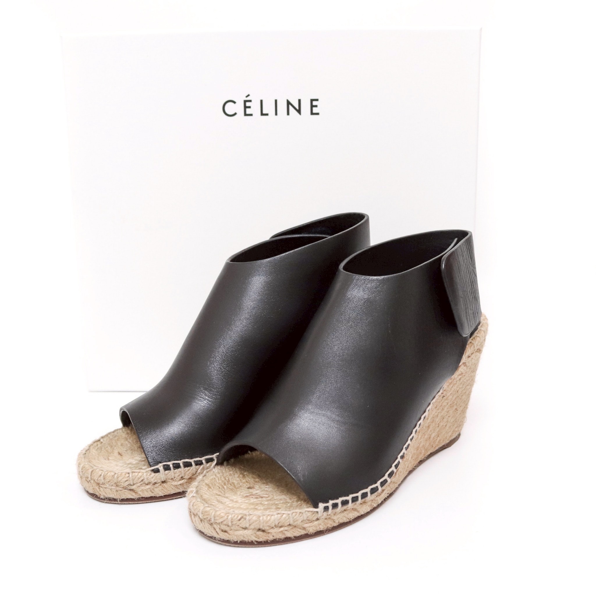 【極品】セリーヌ エスパドリーユ ウェッジソール サンダル ブラック 黒 36