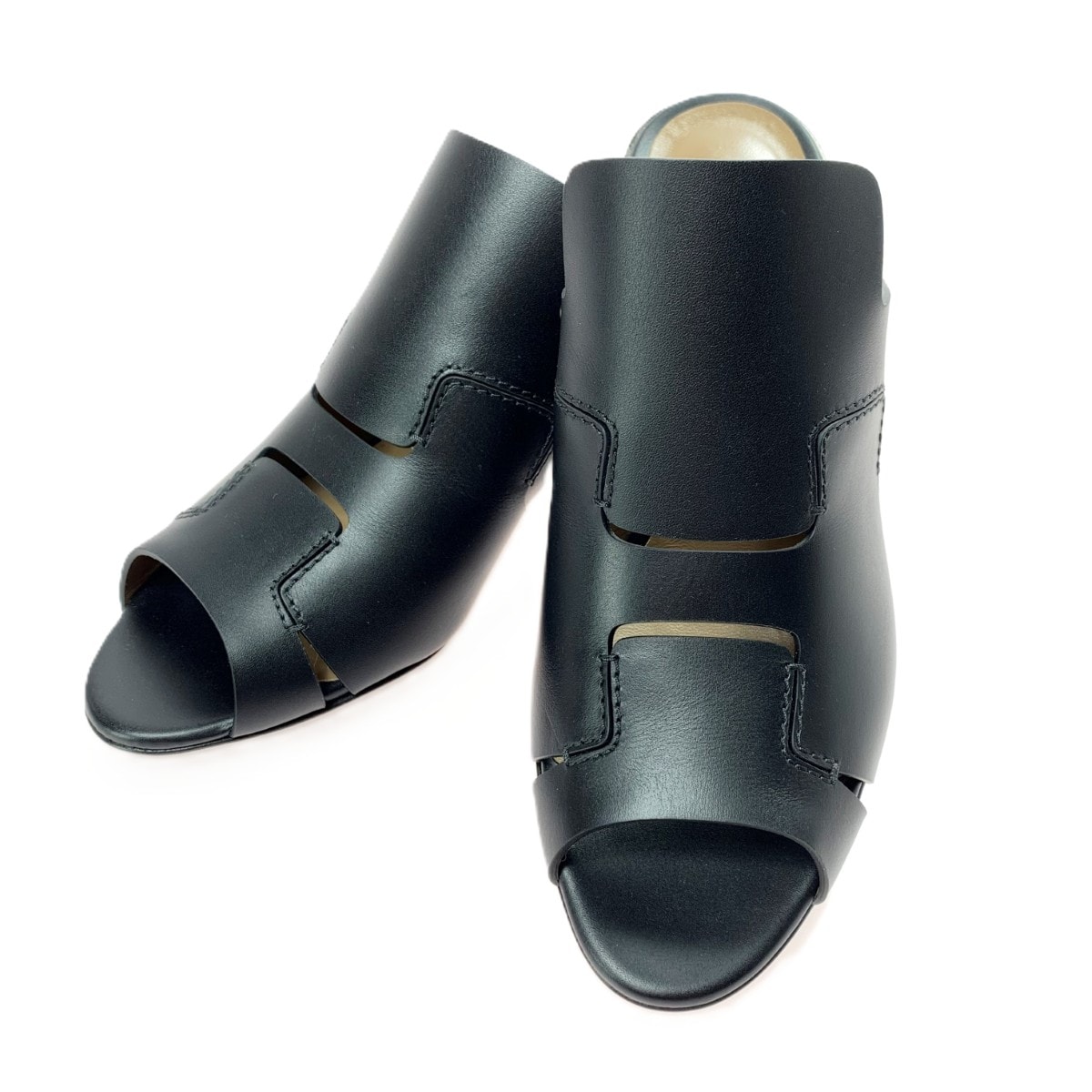 HERMES エルメス Hモチーフ オープントゥー サンダル ブラック レディース SIZE(25.5cm相当)
