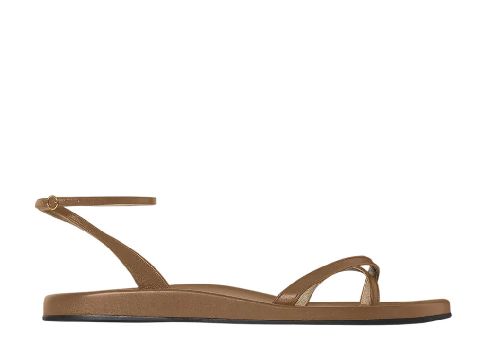 The Row Women's Hugh Ankle Strap Sandal in Leather "Mud"