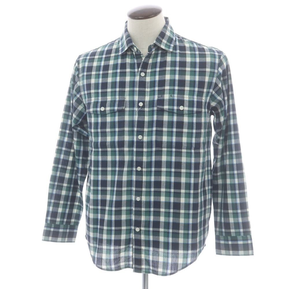 【中古】ザノースフェイス THE NORTH FACE ポリエステルマキシフレッシュ チェック カジュアルシャツ ネイビーxグリーン【サイズL】【メンズ】