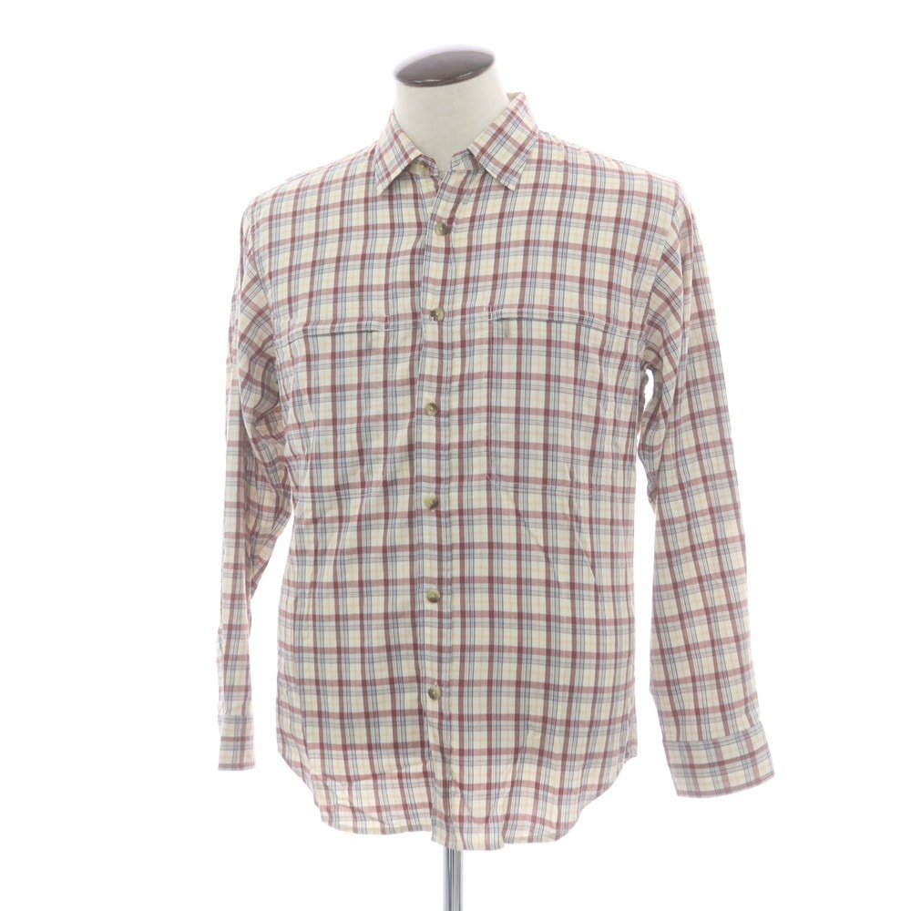 【中古】ザノースフェイス THE NORTH FACE ポリエステルキュプラ チェック カジュアルシャツ ホワイトxレディッシュブラウン【サイズL】【メンズ】