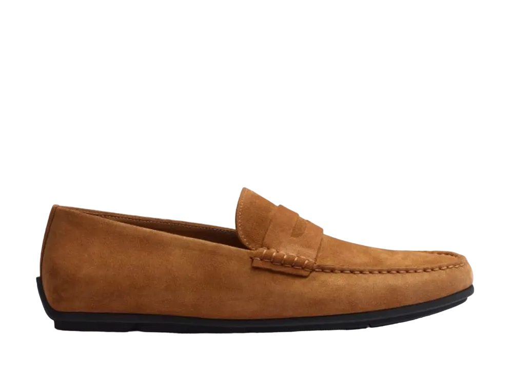 J.M.Weston Warning Car Shoe #932 Suede "Beachnut" 13B1GBQ93252 Rubber Sole