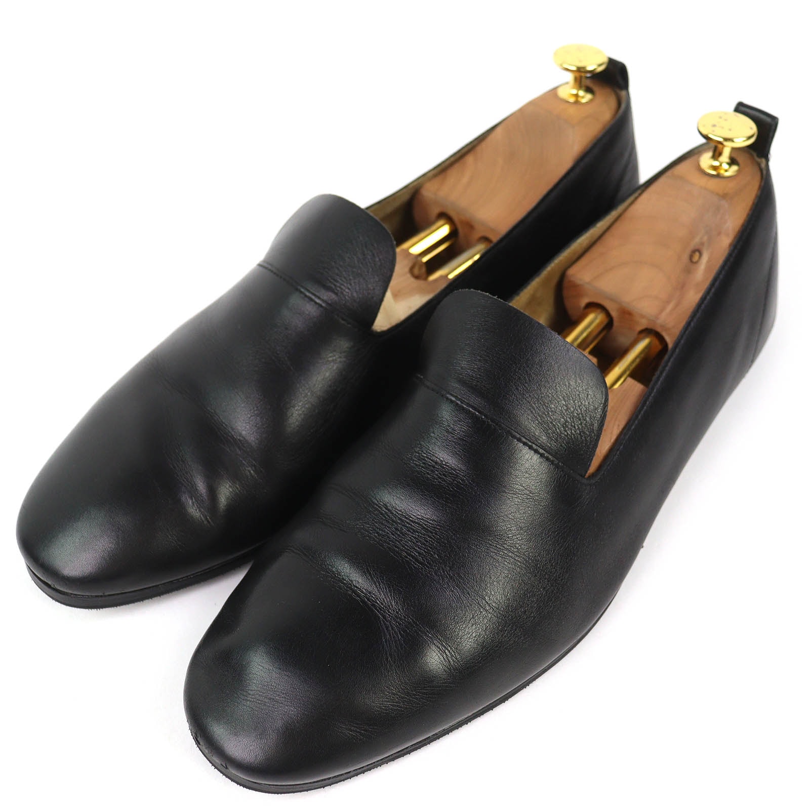 良品 エルメスホースキャリッジ レザーシューズ スリッポン ブラック 44