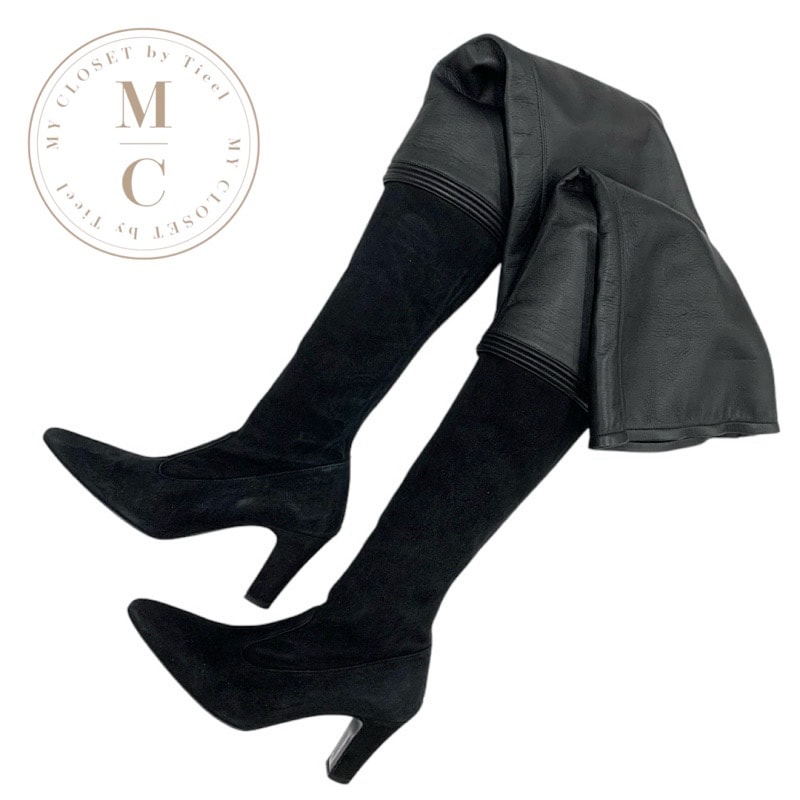 シャネル CHANEL ブーツ ロングブーツ 靴 シューズ レザー スエード ブラック 黒 サイハイブーツ ニーハイブーツ ココマーク