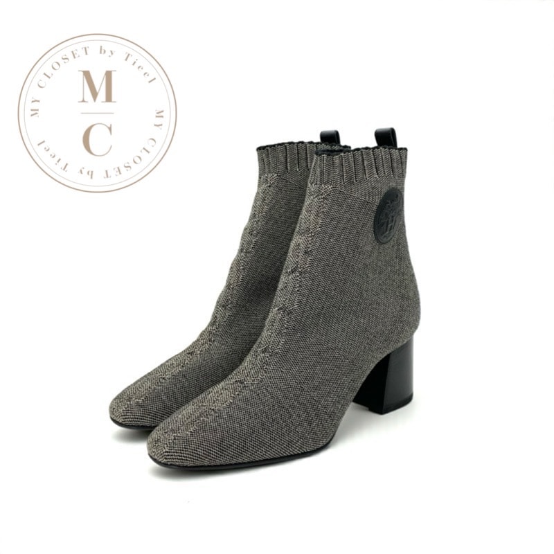 エルメス HERMES ヴォルヴェール ブーツ ショートブーツ 靴 シューズ ファブリック グレー ブラック ソックスブーツ エクスリブリス ニット