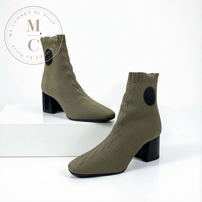 エルメス HERMES ヴォルヴェール ブーツ ショートブーツ 靴 シューズ ファブリック レザー カーキ ブラック ニット エクスリブリス