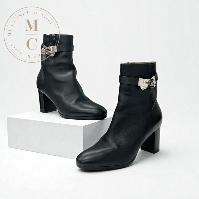 エルメス HERMES サンジェルマン ブーツ ショートブーツ 靴 シューズ レザー ブラック 黒 シルバー ケリー金具