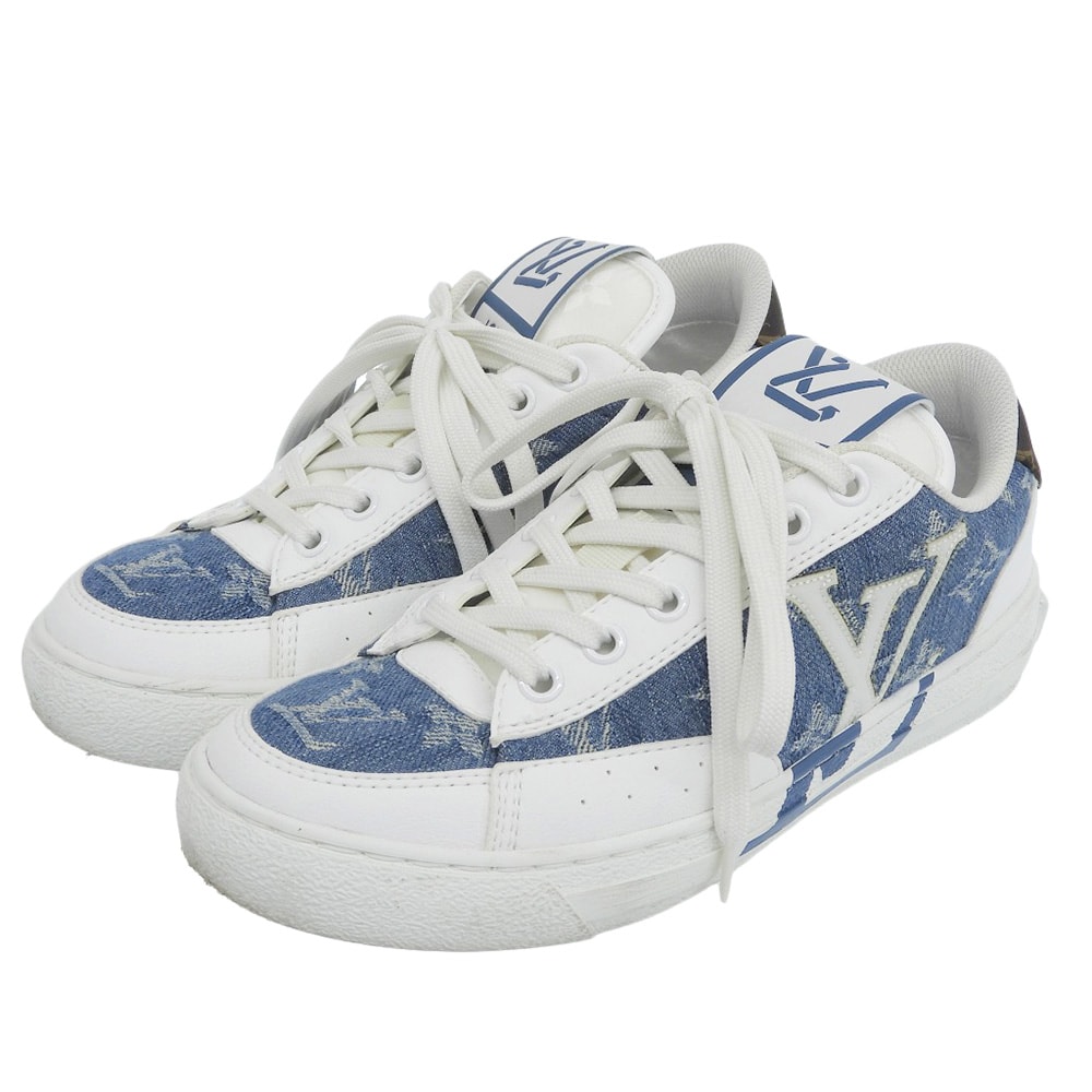 ルイヴィトン 美品 チャーリーラインスニーカー シューズ レディース ホワイト×ブルー 34 1/2 21年製 34 1/2