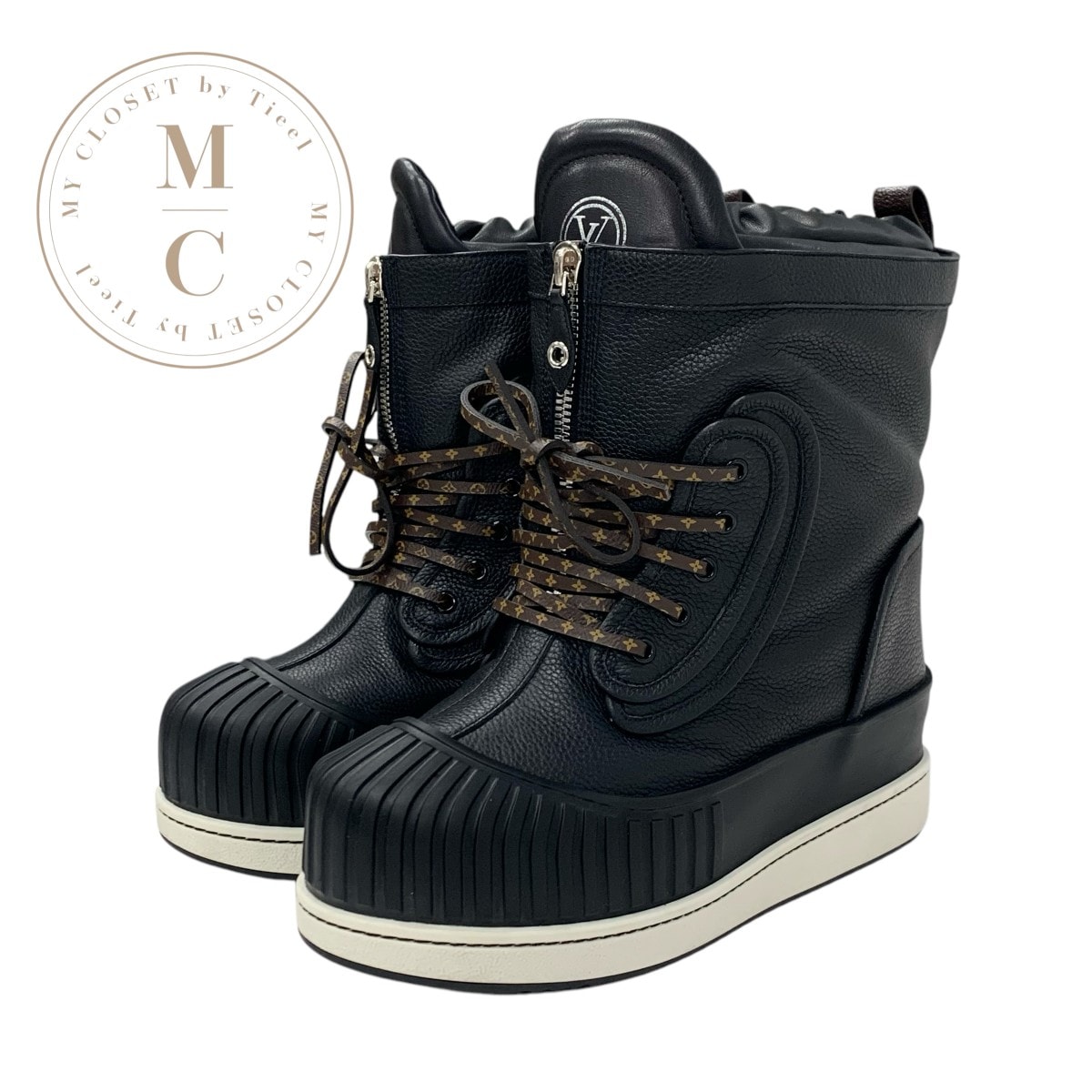 ルイヴィトン LOUIS VUITTON シチズンライン モノグラム ブーツ ショートブーツ 靴 シューズ レザー ブラック 黒 ロゴ レースアップ アンクルブーツ