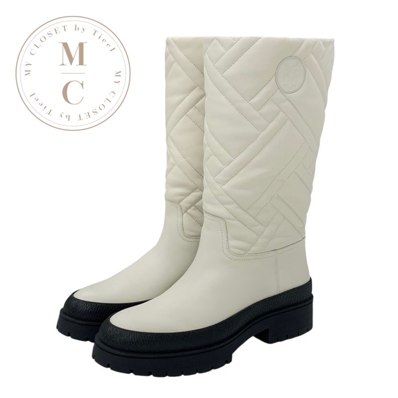 エルメス HERMES フジ ブーツ ロングブーツ 靴 シューズ レザー アイボリー エクスリブリス キルティング