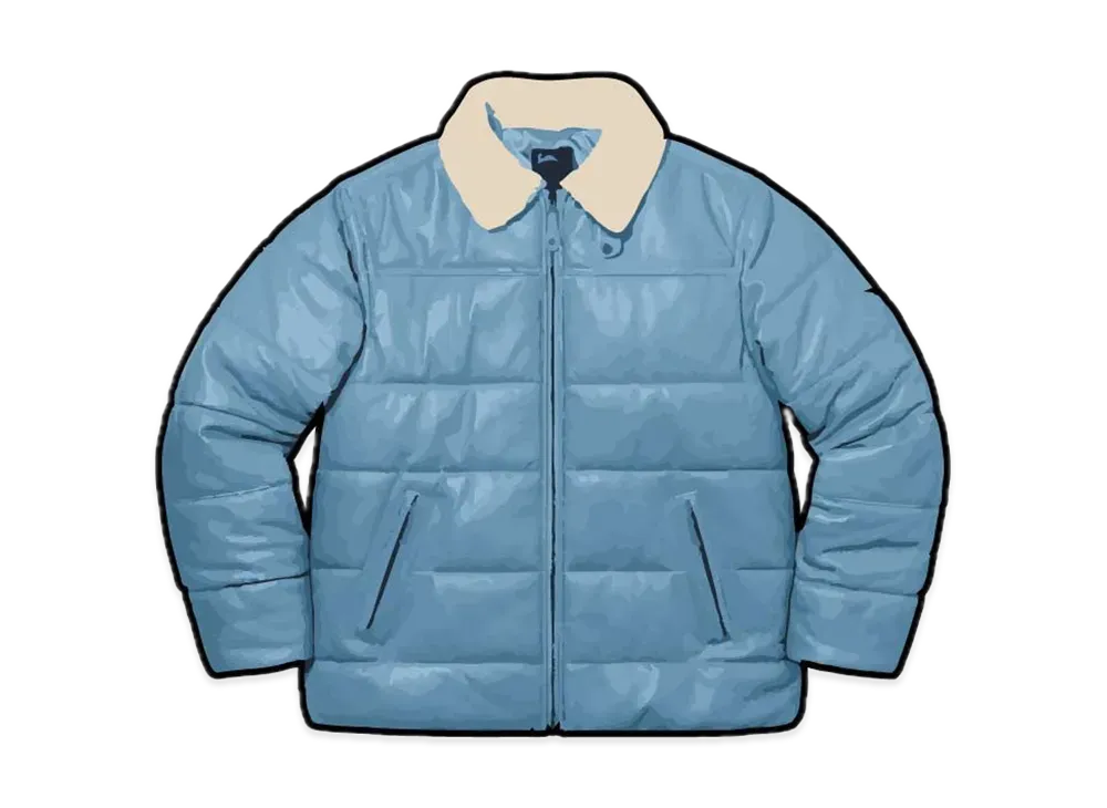 Supreme / Schott Shearling Collar Leather Puffy Jacket "Light Blue"
