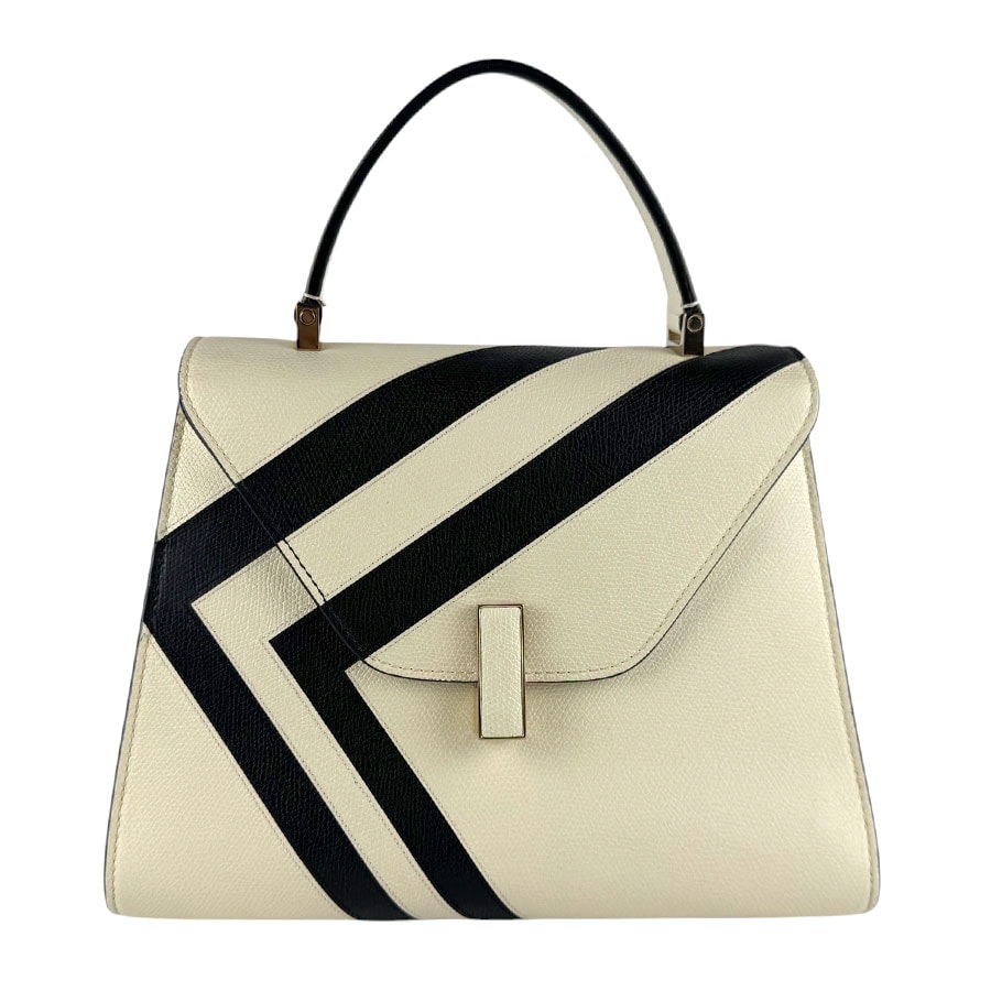 ヴァレクストラ Valextra ハンドバッグ ショルダーバッグ イジィデ レザー アイボリー/ブラック ゴールド レディース【中古】 z9318