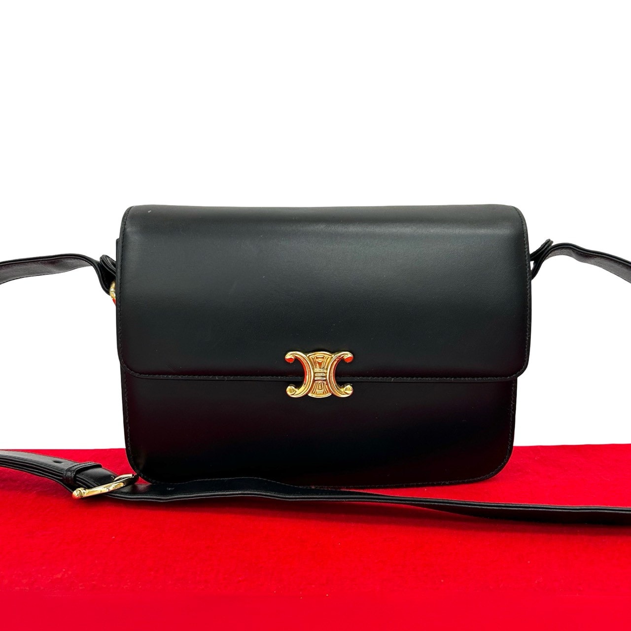 CELINE セリーヌ トリオンフ 金具 カーフ レザー ショルダーバッグ ブラック