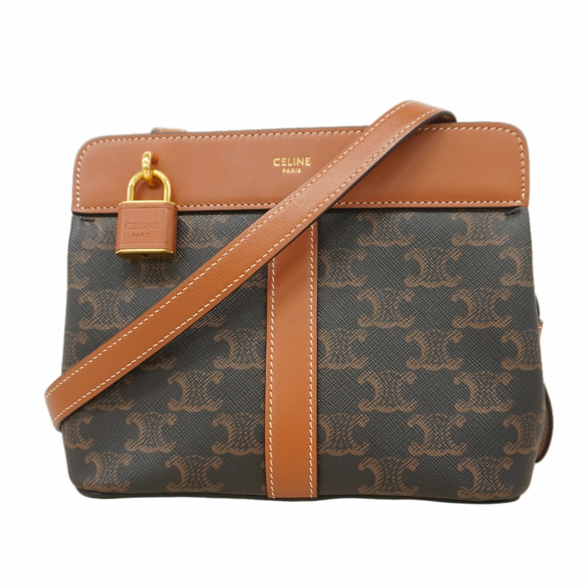 【6db1019】セリーヌ ショルダーバッグ トリオンフ ティーンカバドゥ PVC ブラック ブラウン ゴールド金具【中古】レディース