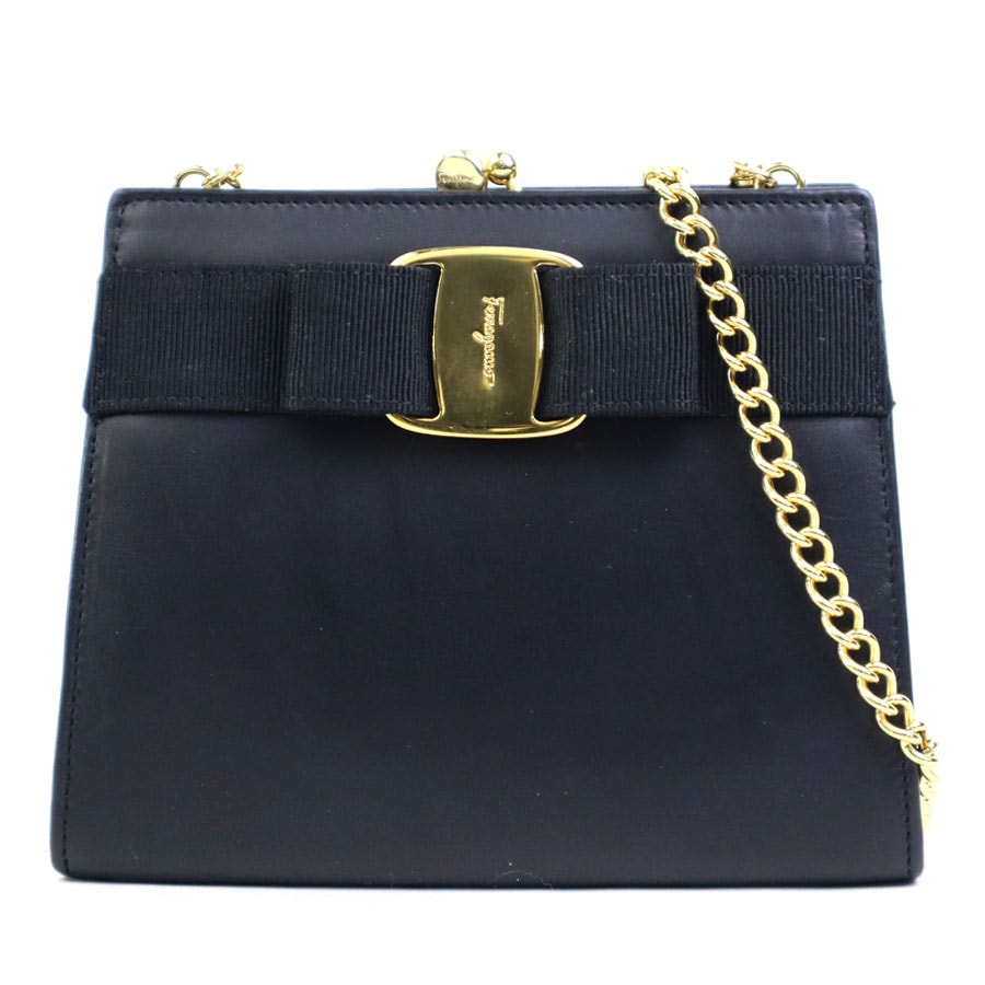 サルヴァトーレフェラガモ Salvatore Ferragamo ショルダーバッグ ヴァラリボン レザー/メタル ブラック/ゴールド レディース【中古】 e61621k