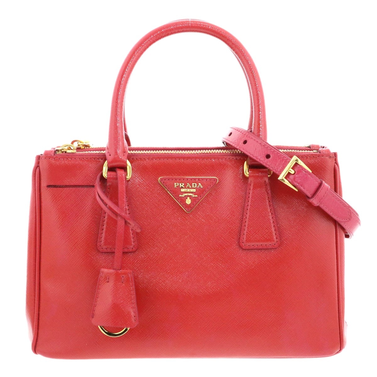 PRADA プラダ ガレリア 2WAY ハンドバッグ トライアングルロゴ ショルダーバッグ BN2316 サフィアーノ レッド レディース【中古】