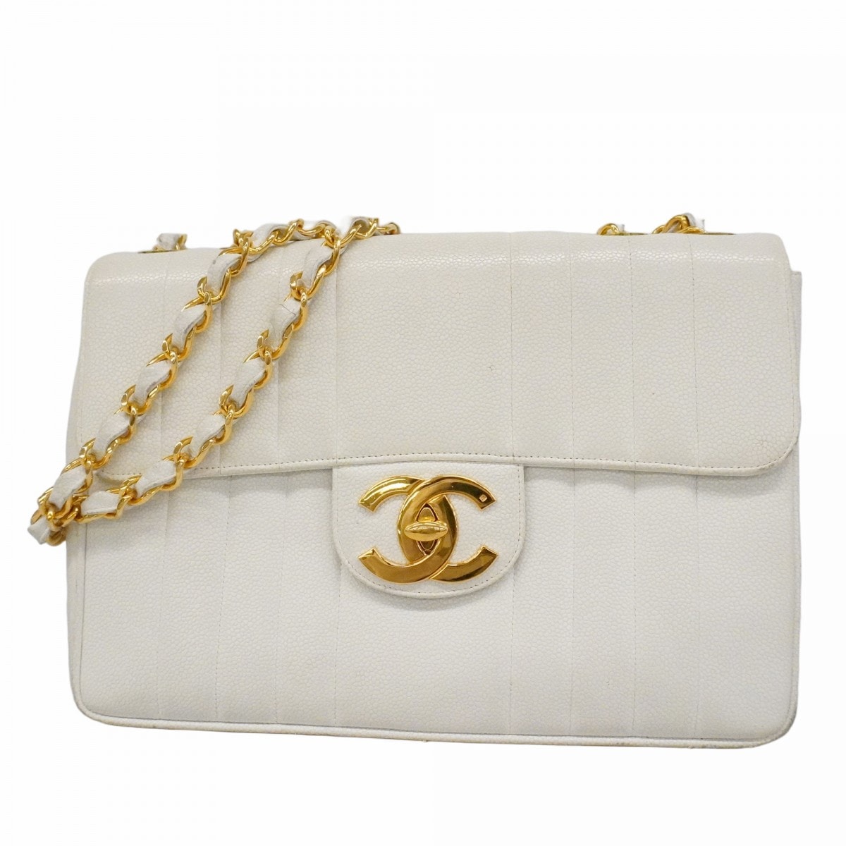 ★SALE【6ce6081-k】シャネル ショルダーバッグ マドモアゼル Wチェーン キャビアスキン ホワイト ゴールド金具【中古】レディース