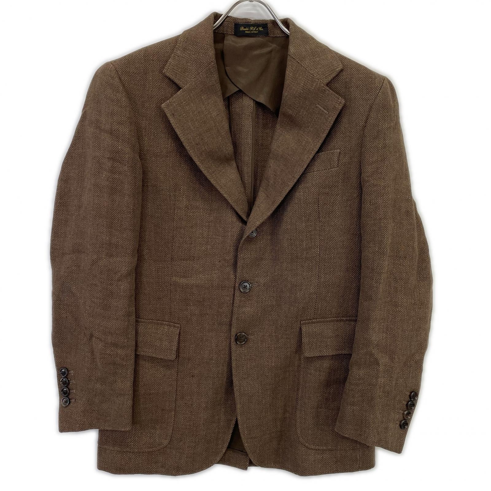 ダブルアールエル 782959833001 イタリア製 ブラウン リネン センターベント 3Bヘリンボーンテーラードジャケット 36S