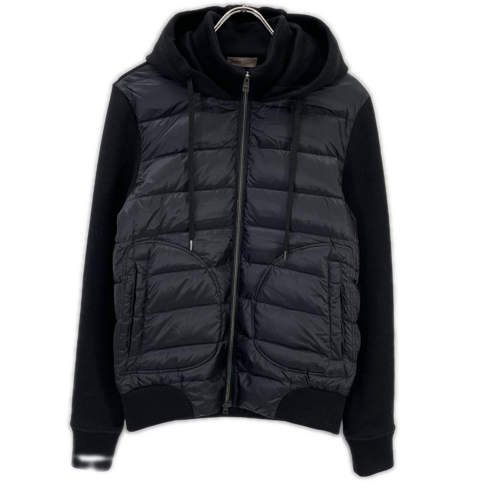ヘルノ JP003UR リゾート ネイビー ウォーターレペレントナイロンライトダウンハイブリッド フーディーブルゾン 46