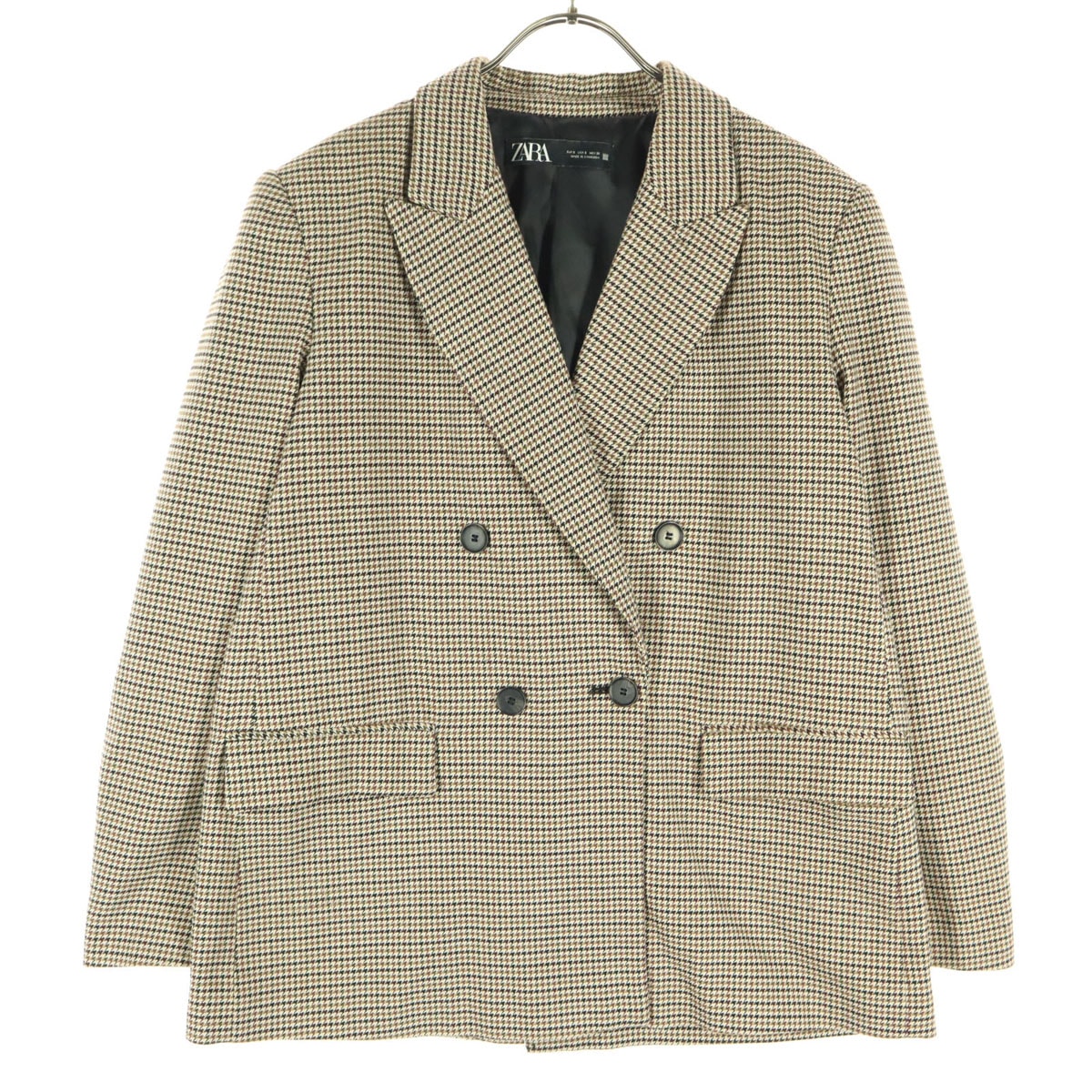 美品 ZARA ザラ 千鳥格好柄 長袖 ダブルボタン テーラードジャケット S ベージュ系