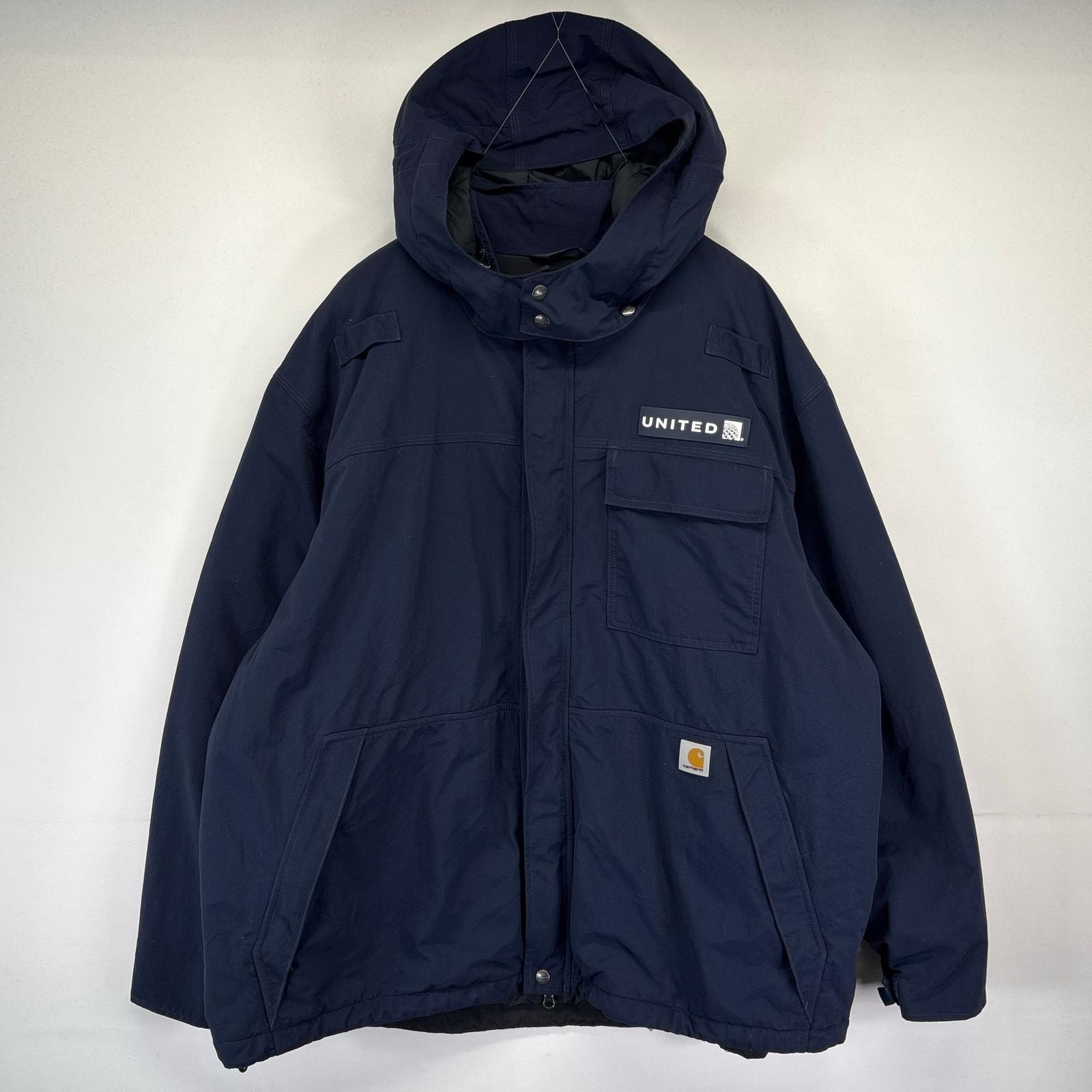 古着 カーハート Carhartt ナイロンジャケット フルジップ 中綿 ワーク パーカー 大きいサイズ ワンポイントロゴ 3XL ネイビー メンズ
