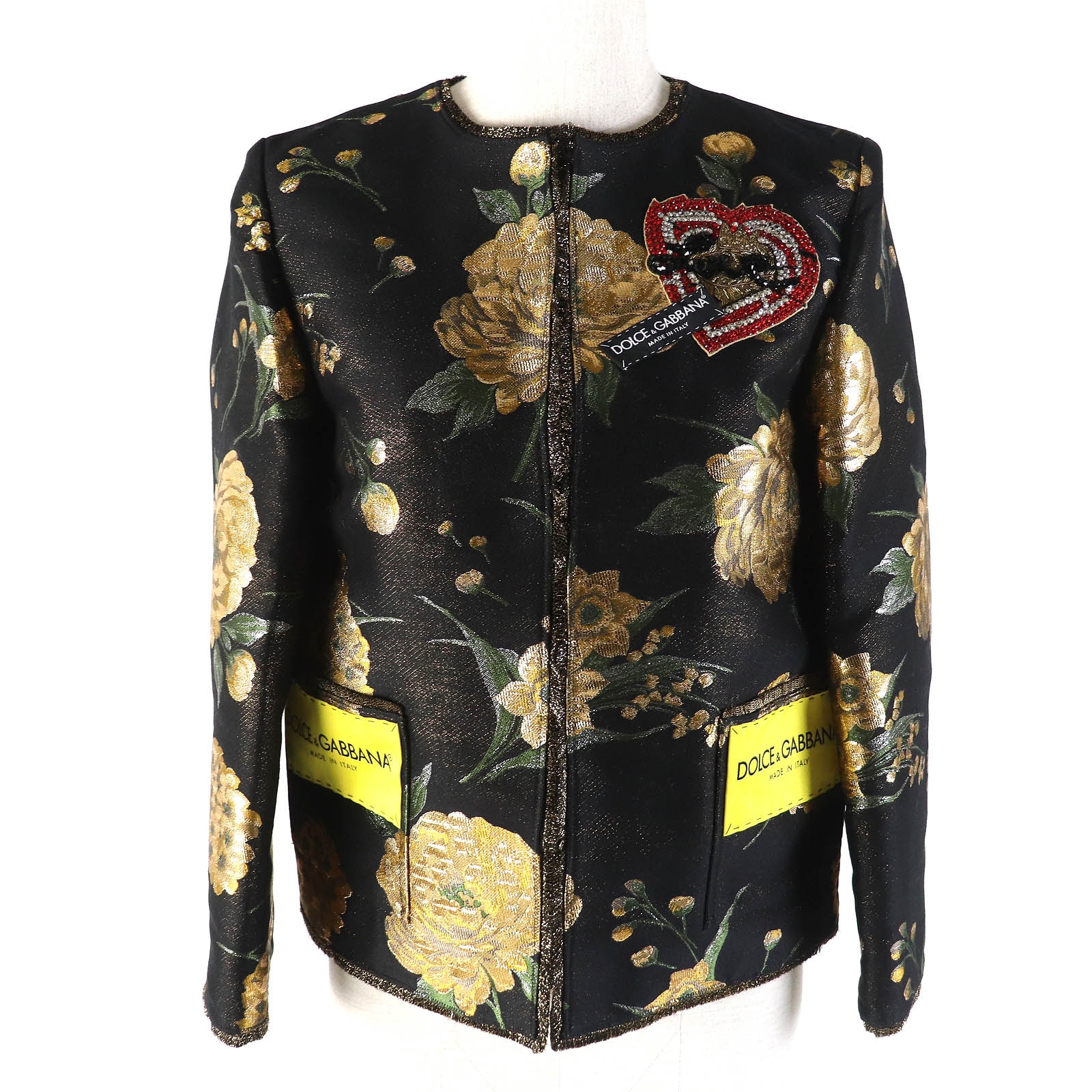 ノーカラージャケット ブラック ゴールド グリーン レディース 36