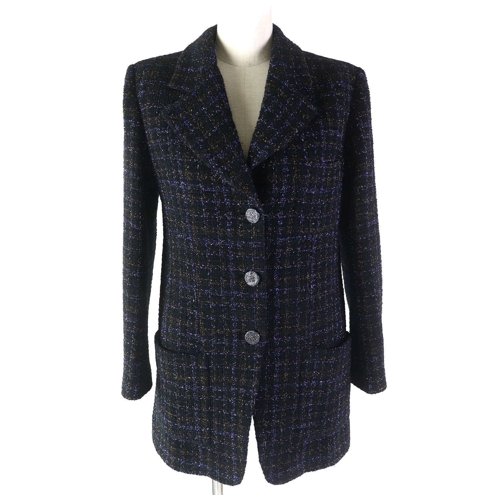 シャネル 98C P10107 ツイード ジャケット レディース アイボリー ブラック 38 CHANEL