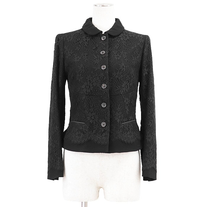 【美品】 ルイ・ヴィトン レース ラウンドカラー ジャケット レディース ブラック 36 LOUIS VUITTON