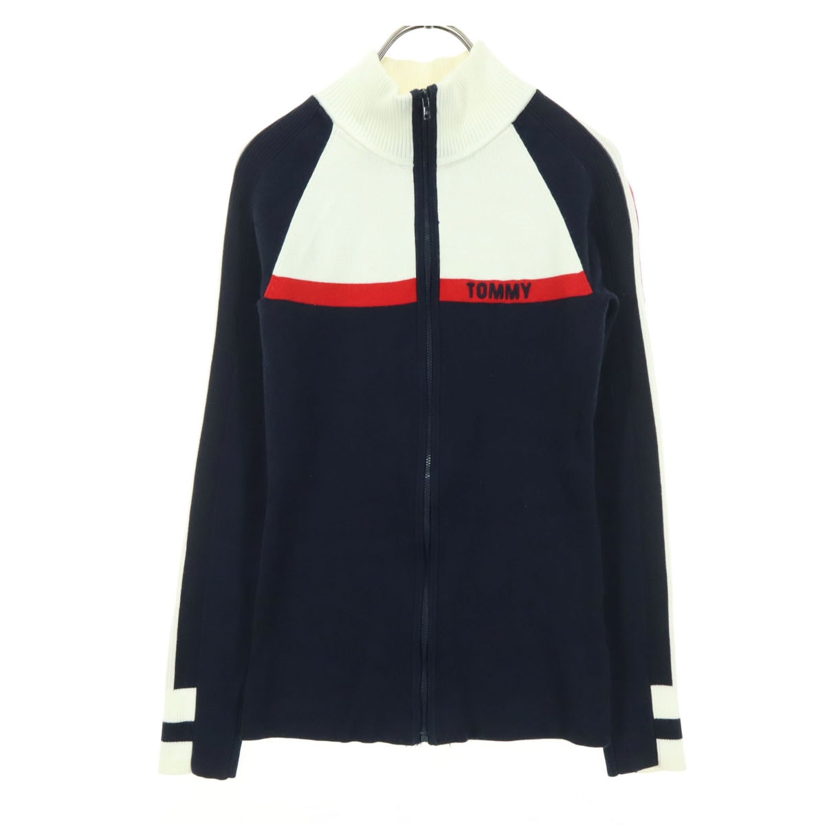 TOMMY HILFIGER トミーヒルフィガー 英字 長袖 ニットジャケット XS ブラック マルチカラー