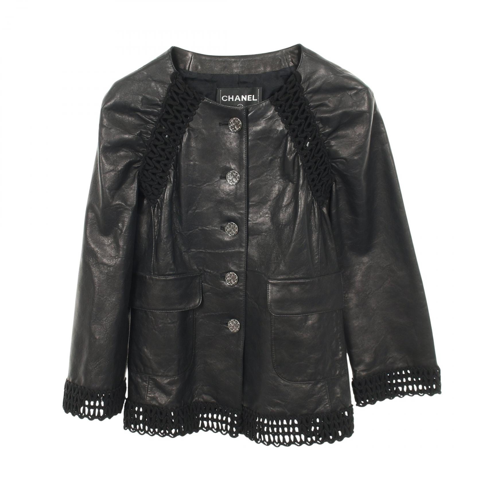 シャネル CHANEL オープンワーク ボーダー 革ジャン 衣料品 アウター ラムレザー レディース ブラック系 P57938C00280 【中古】