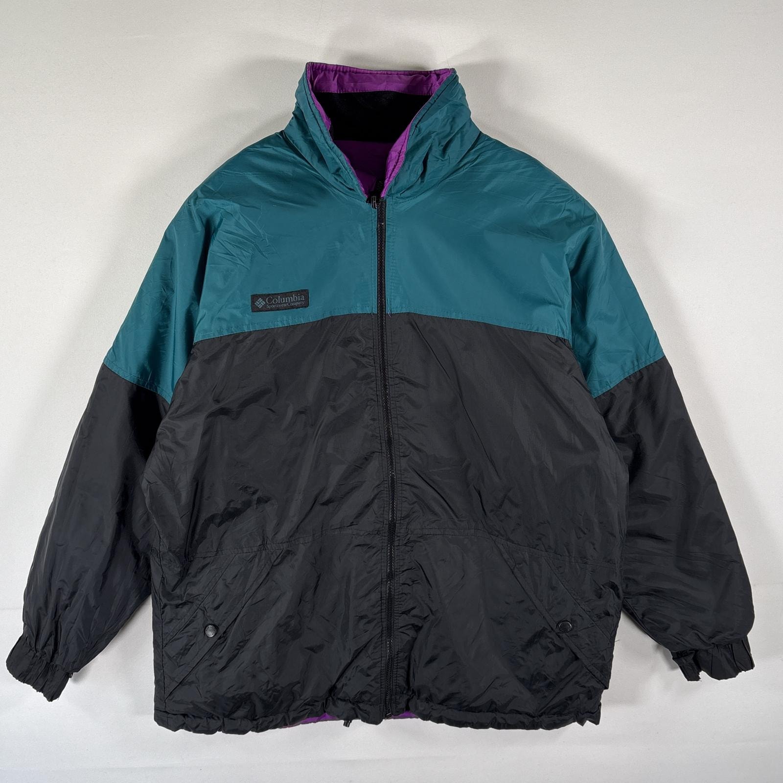 古着 コロンビア Columbia ナイロンジャケット リバーシブル フルジップ ワンポイントロゴ 中綿 L ブラック レディース