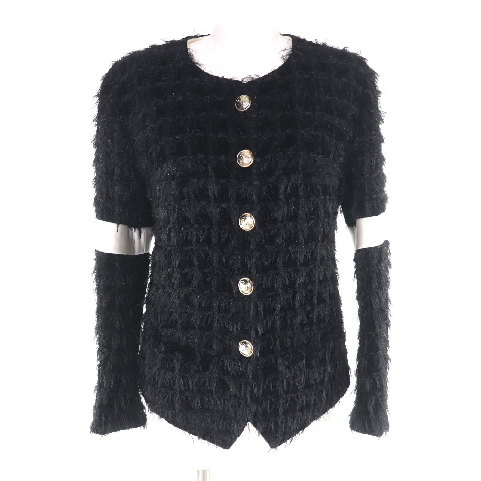 極美品 シャネル ノーカラージャケット ブラック 36 P65274V61200