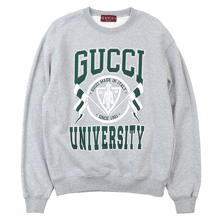 【美品】 グッチ トレーナー カレッジ ロゴ プリント クルーネック スウェット メンズ グレー グリーン XS GUCCI