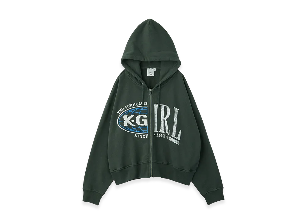 X-Girl Women's Overdyed Zip Up Sweat Hoodie "Green"