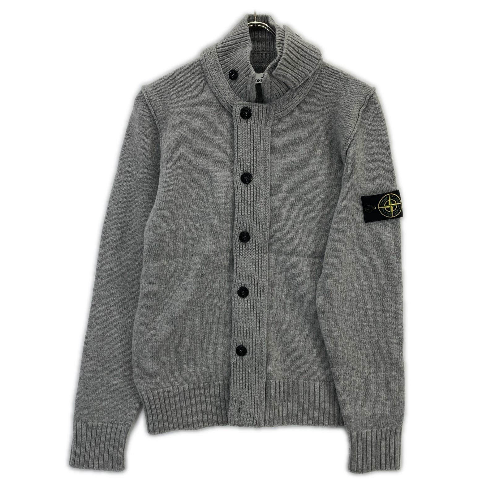 ストーンアイランド グレー ウール スタンドカラー カーディガン M