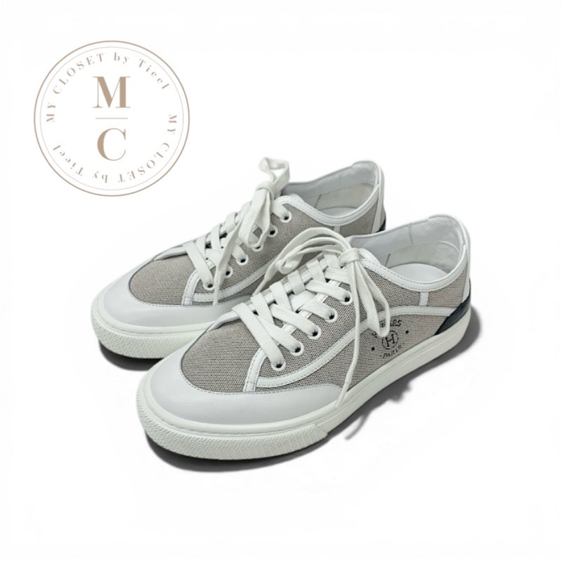 エルメス HERMES ゲット スニーカー 靴 シューズ キャンバス レザー グレー ホワイト ブラック ローカット ロゴ