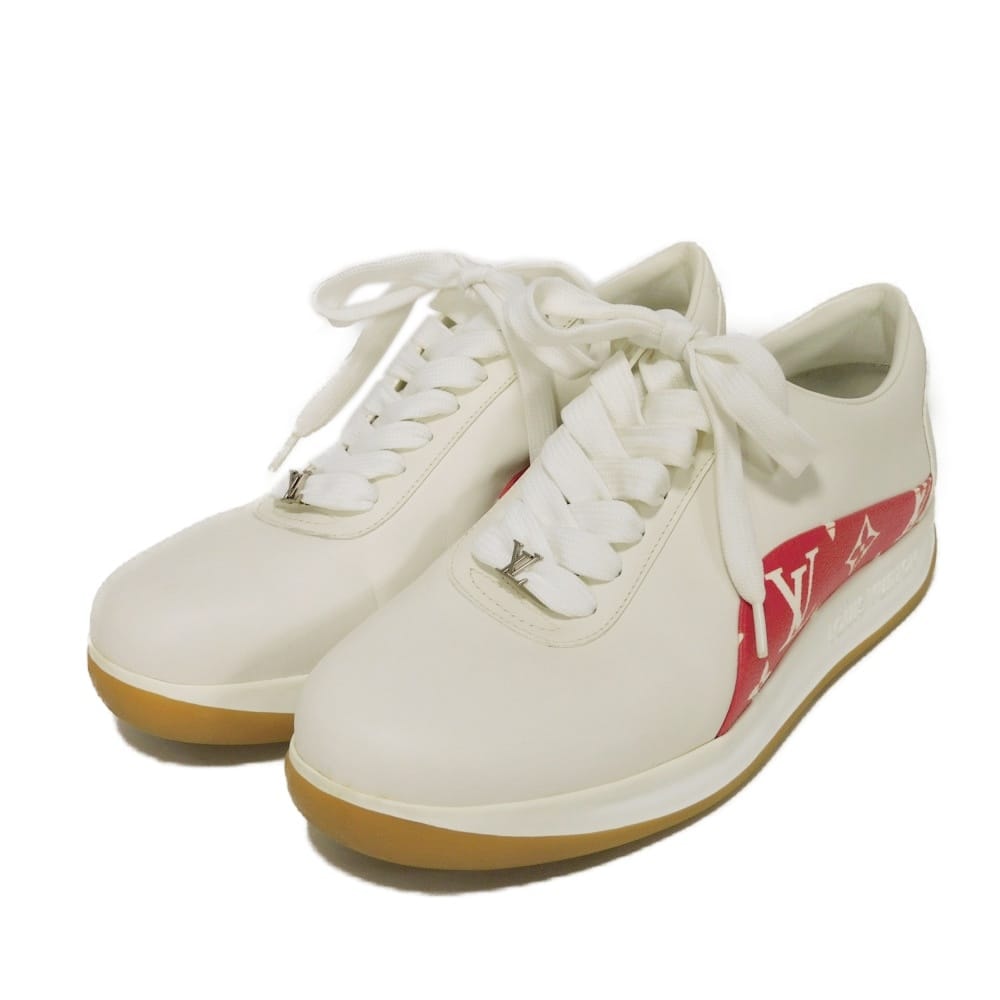 LOUIS VUITTON ルイ・ヴィトン ランアウェイ ライン 5 LVロゴ エンボス コクリコ レッド 24.5cm モノグラム シュプリーム ホワイト スニーカー 1A3EQ5