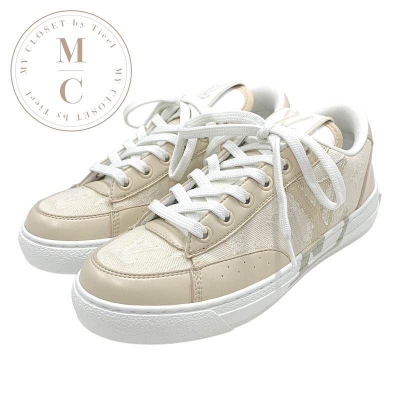 ルイヴィトン LOUIS VUITTON チャーリーライン スニーカー 靴 シューズ ファブリック ベージュ ホワイト 未使用 LVロゴ