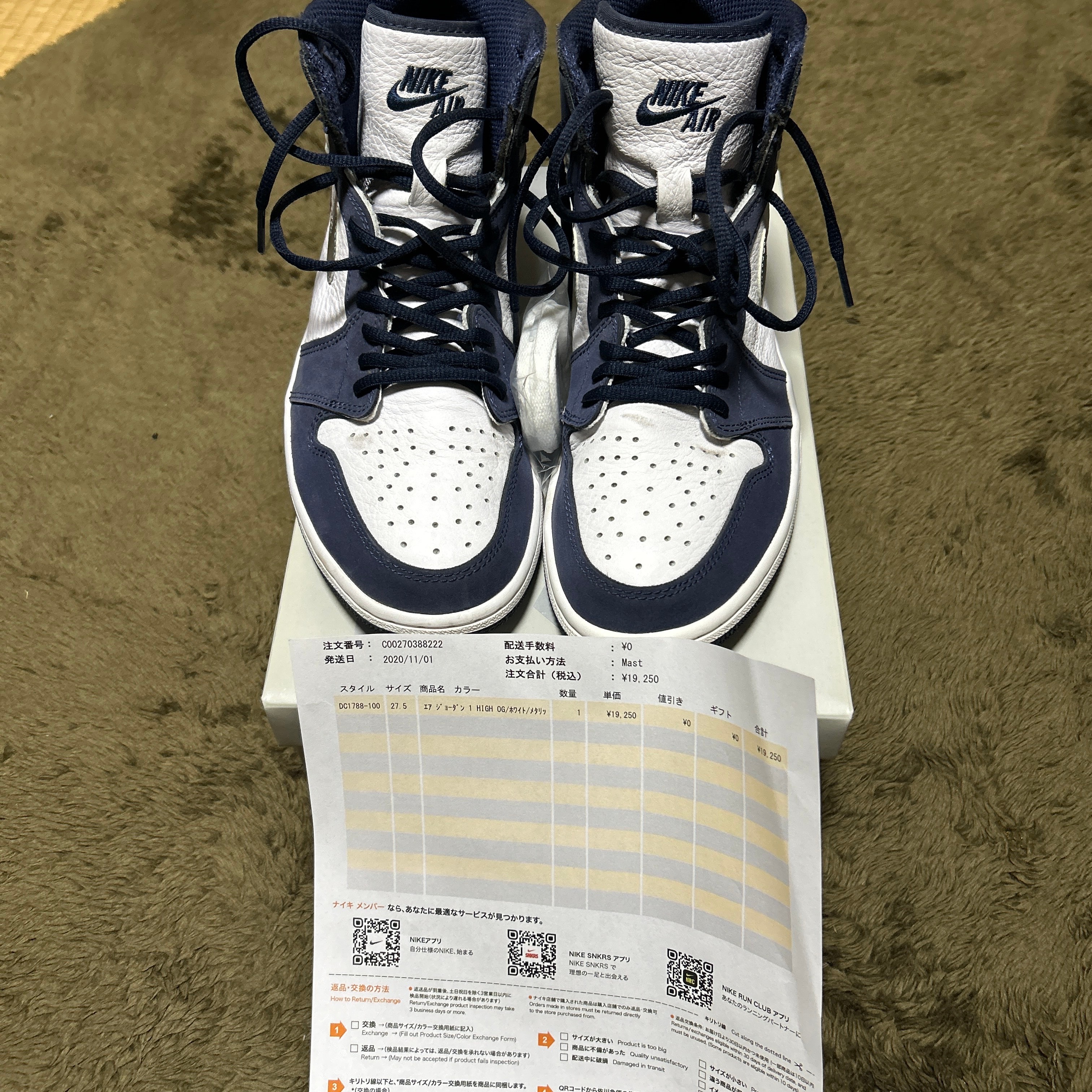 Nike Air Jordan 1 High OG CO.JP "White/Midnight Navy" (2020)(ブリーフケースなし)