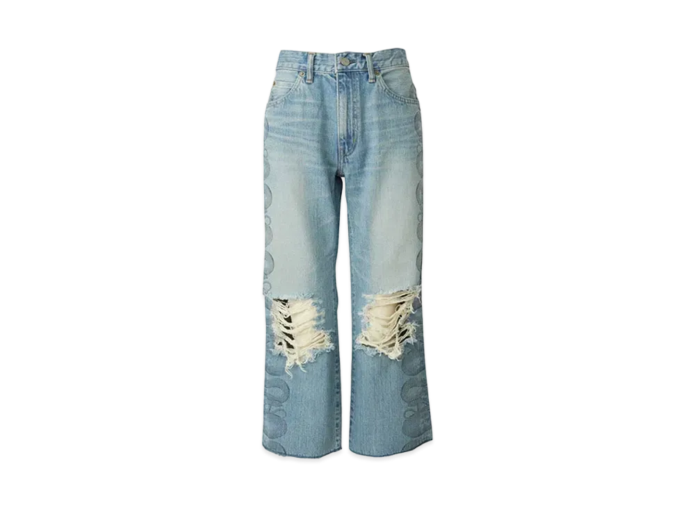 HYSTERIC GLAMOUR Snake Loop 8/10Th Length Distressed Denim Pants "Light Indigo Blue"
