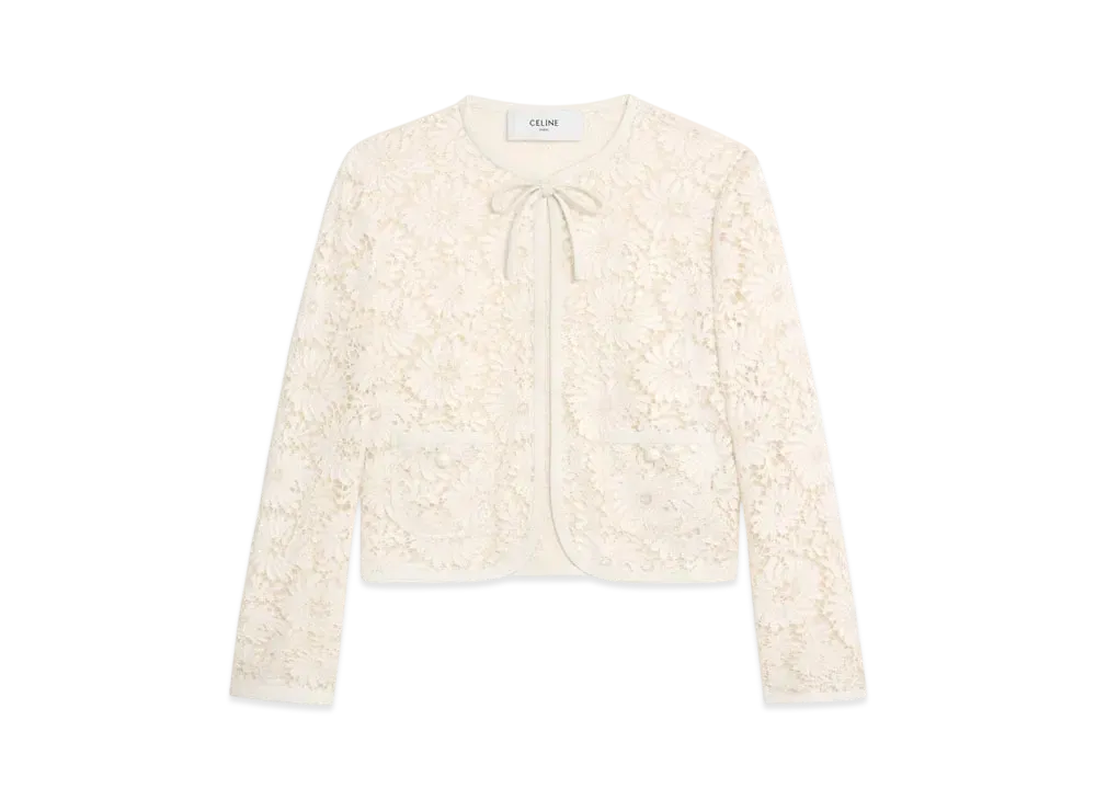 CELINE Women's Verneuil Jacket in Linen and Cotton Lace "Ivoire"