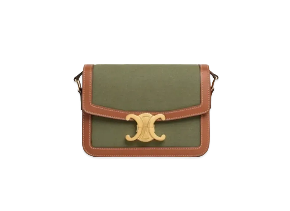 CELINE Teen Triomphe Bag in Raffia and Calfskin "Khaki/Tan"