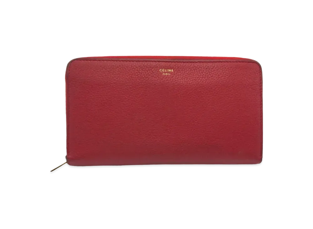 CELINE Large Zipped Leather Wallet "Red"