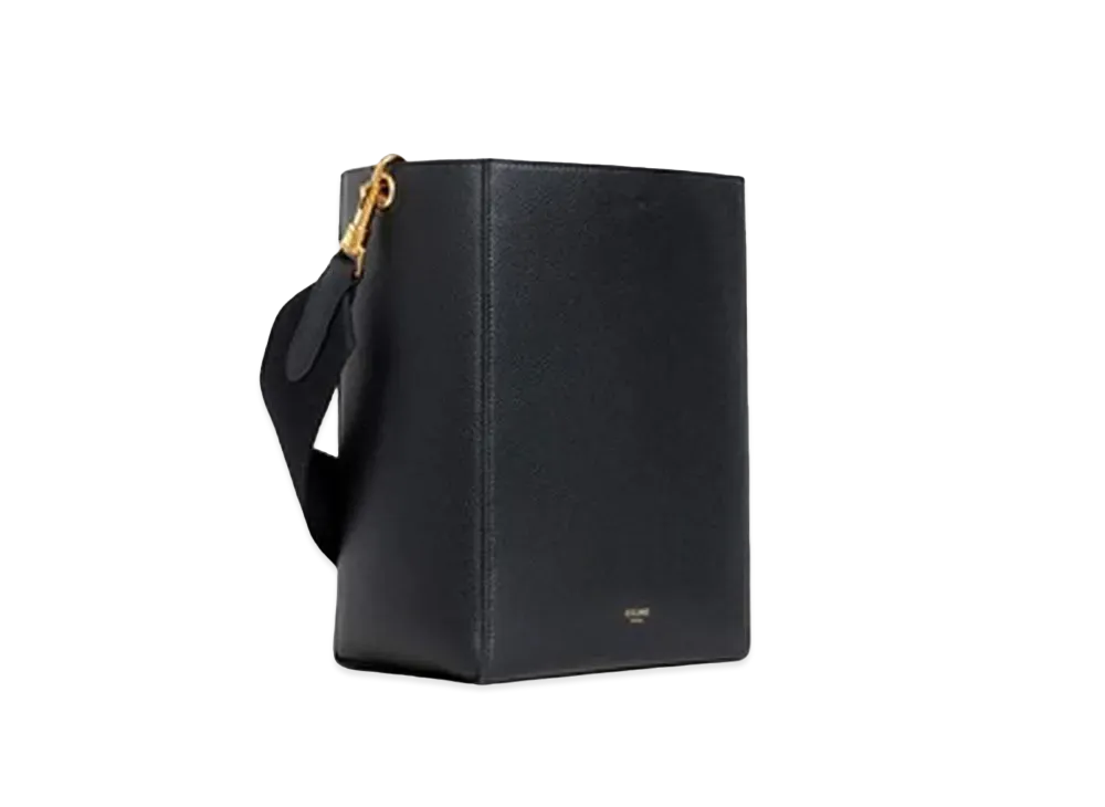 CELINE Sangle Small Bucket Bag in Soft Grained Calfskin "Black"