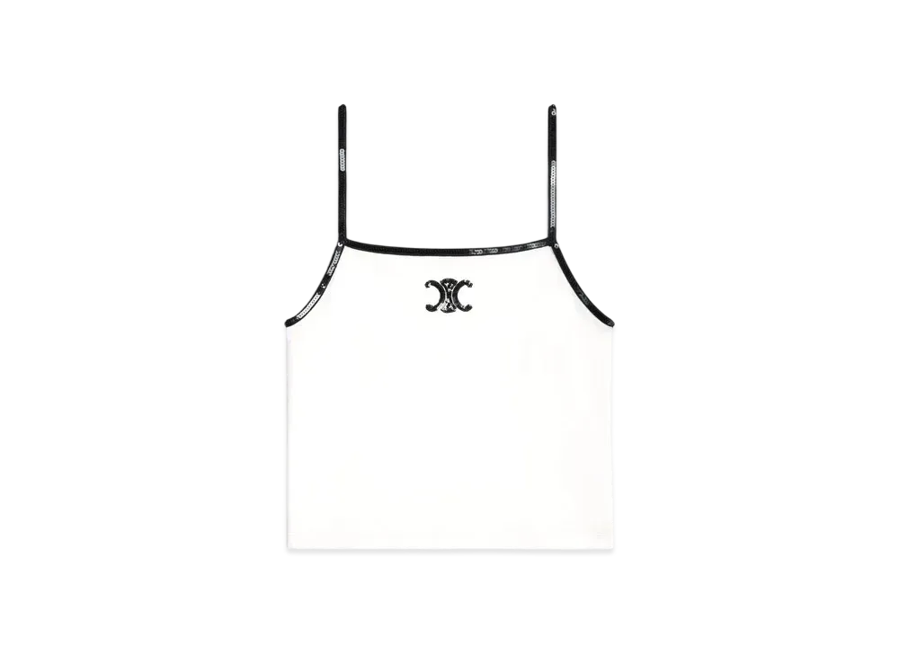 CELINE Embroidered Triomphe Tank Top In Cotton Jersey "Off White/Black"