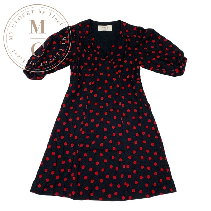セリーヌ CELINE ワンピース レーヨン ブラック レッド ドット ドレス