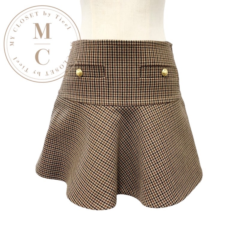 セリーヌ CELINE ボトムス ブラウン系 ゴールド 千鳥格子 ミニスカート フリルスカート